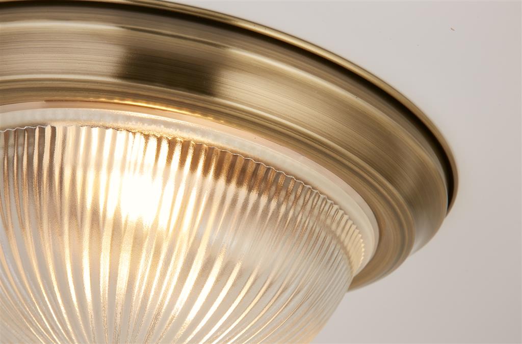 Glasgow Flush Antique Brass Light Our final favourite is the Glasgow antique brass flush bathroom ceiling light. Mixing traditional and contemporary with a touch of industrial style, this flush light would look great in a traditional-style bathroom or loo.