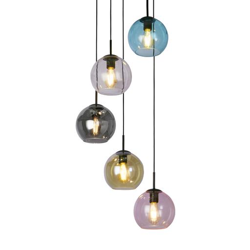 Mardi Gras II 5Lt Pendant - Black Metal & Coloured Glass
