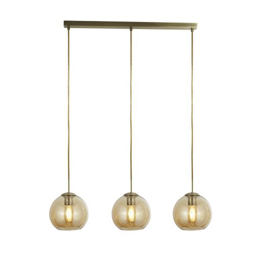 Balls 3Lt Bar Pendant - Antique Brass Metal & Amber Glass