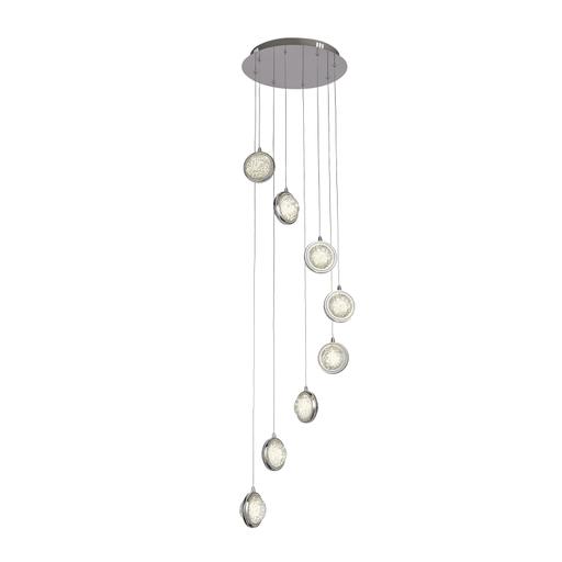 Quartz 8Lt Multi-Drop Pendant- Bubble Glass With Detail Rim